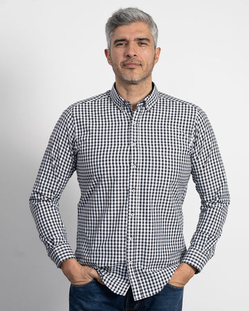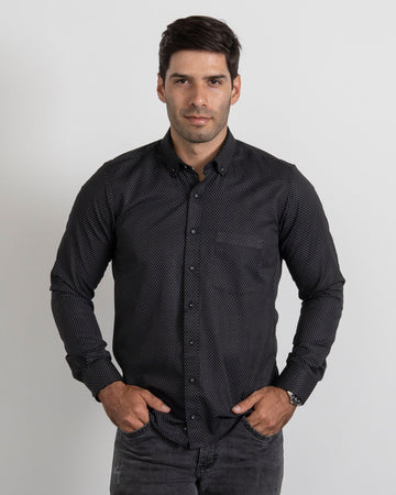 Camisa Cuadros Unicolor Negra