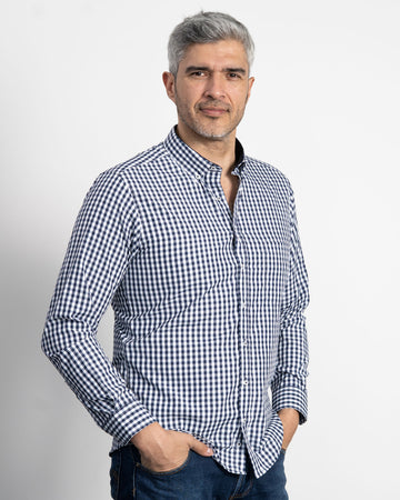 Camisa Cuadros Unicolor Azul Oscura