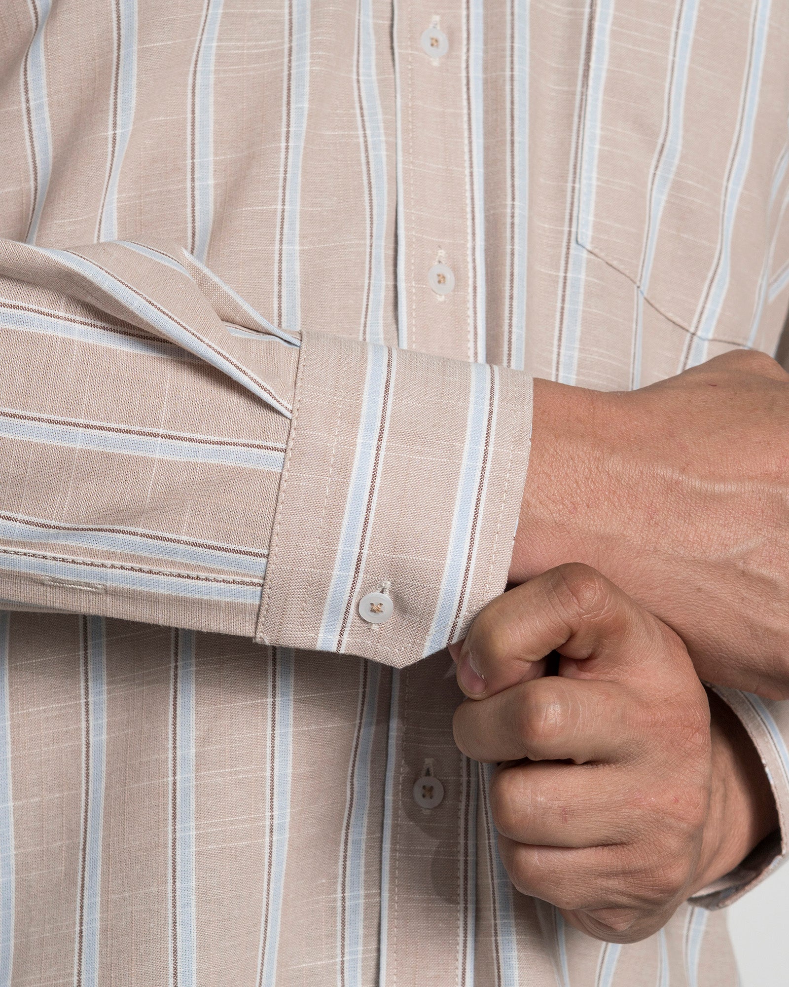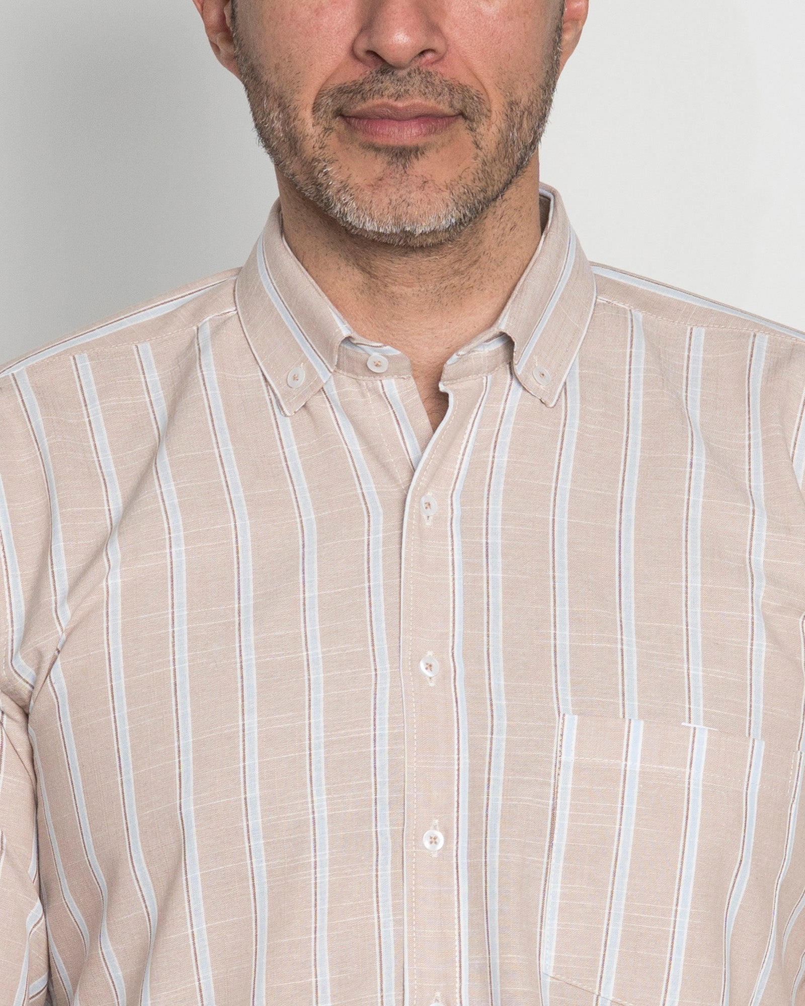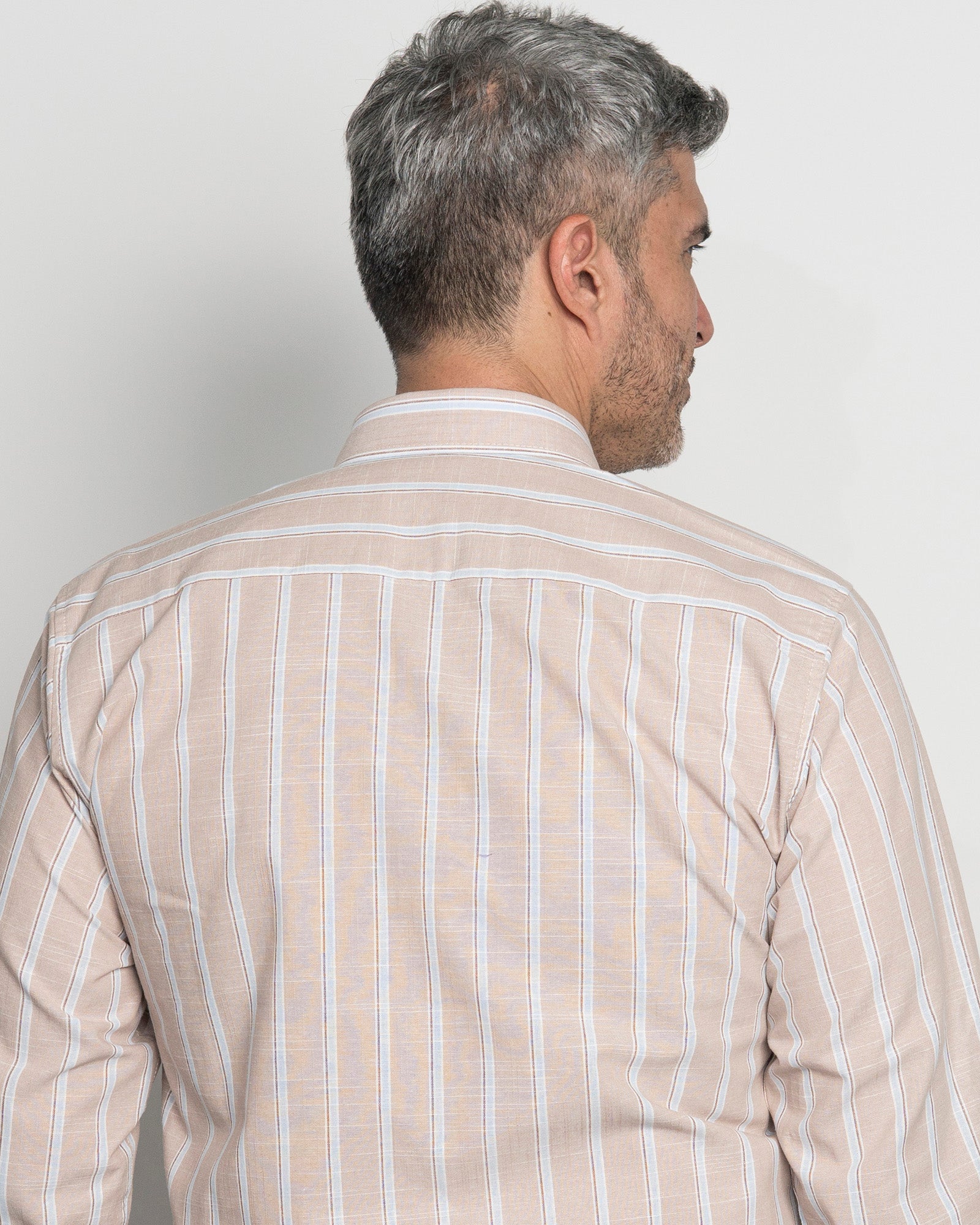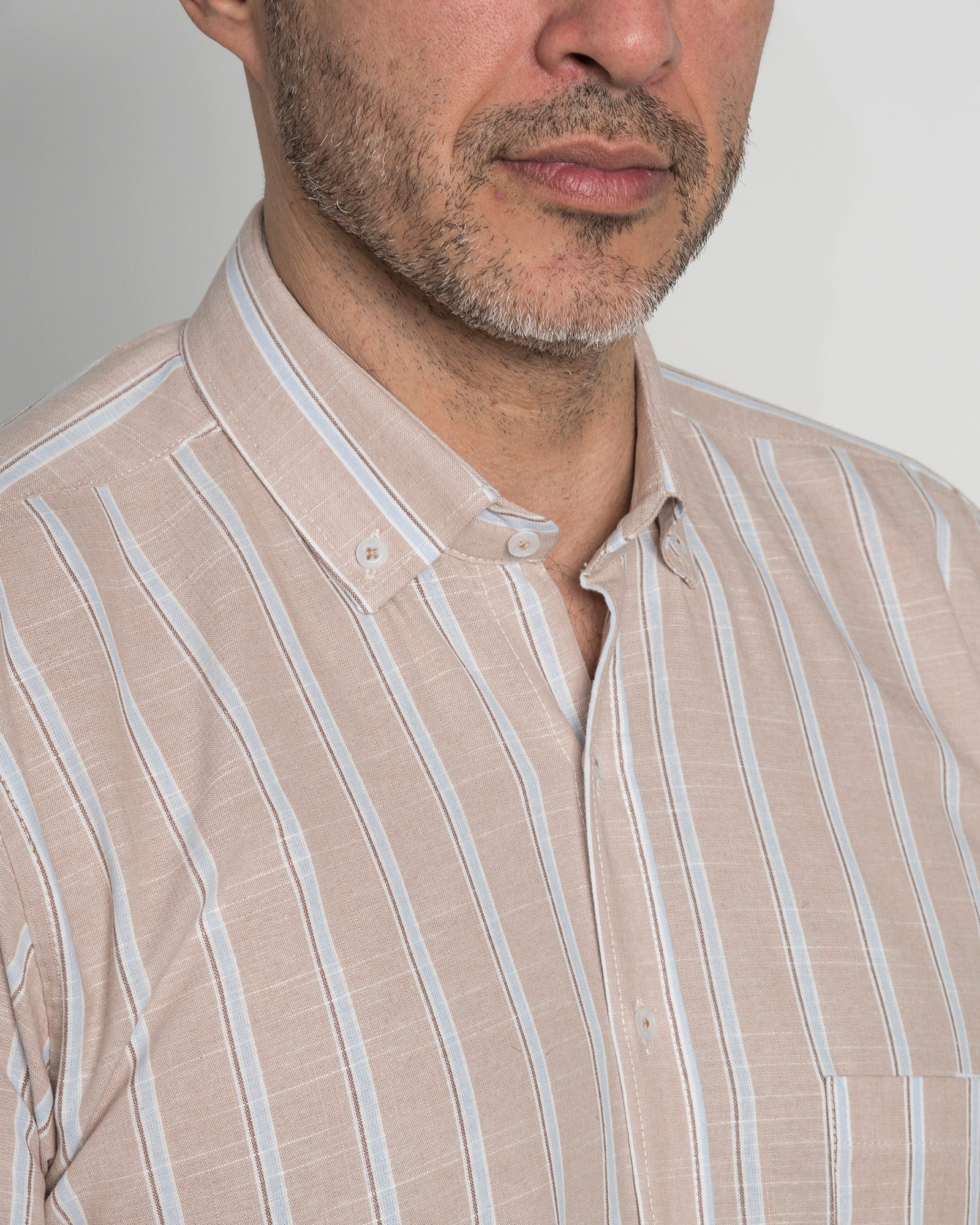 Camisa Algodón Beige Raya Azul
