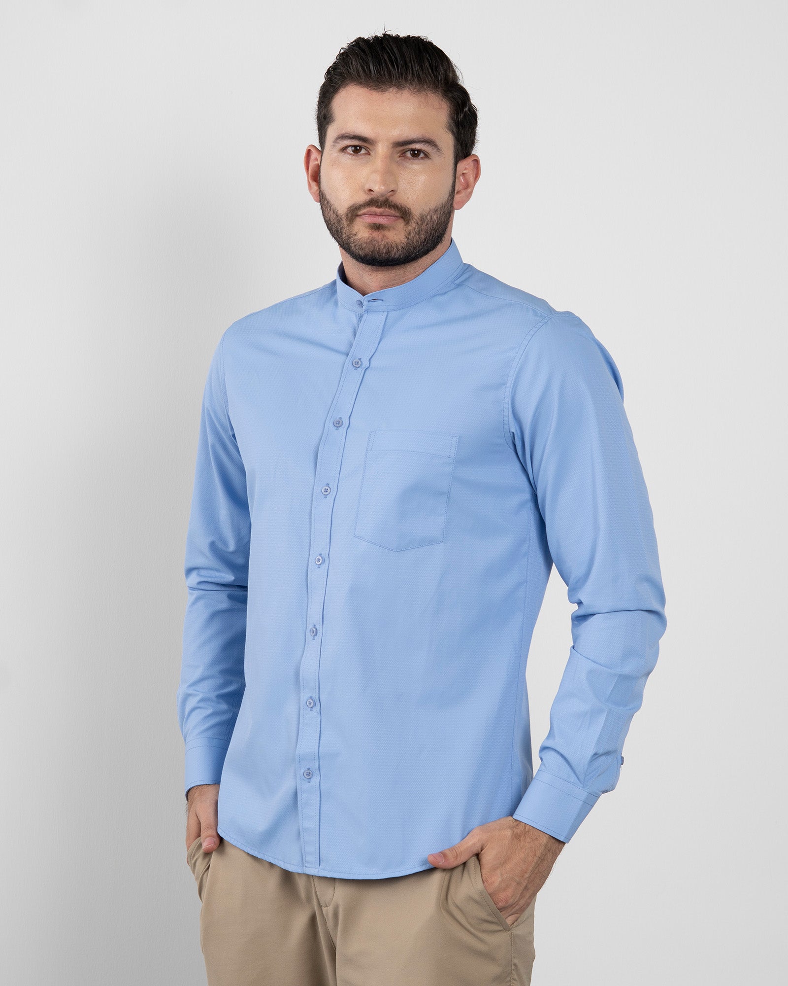 Camisa Cuello Mao Azul Claro