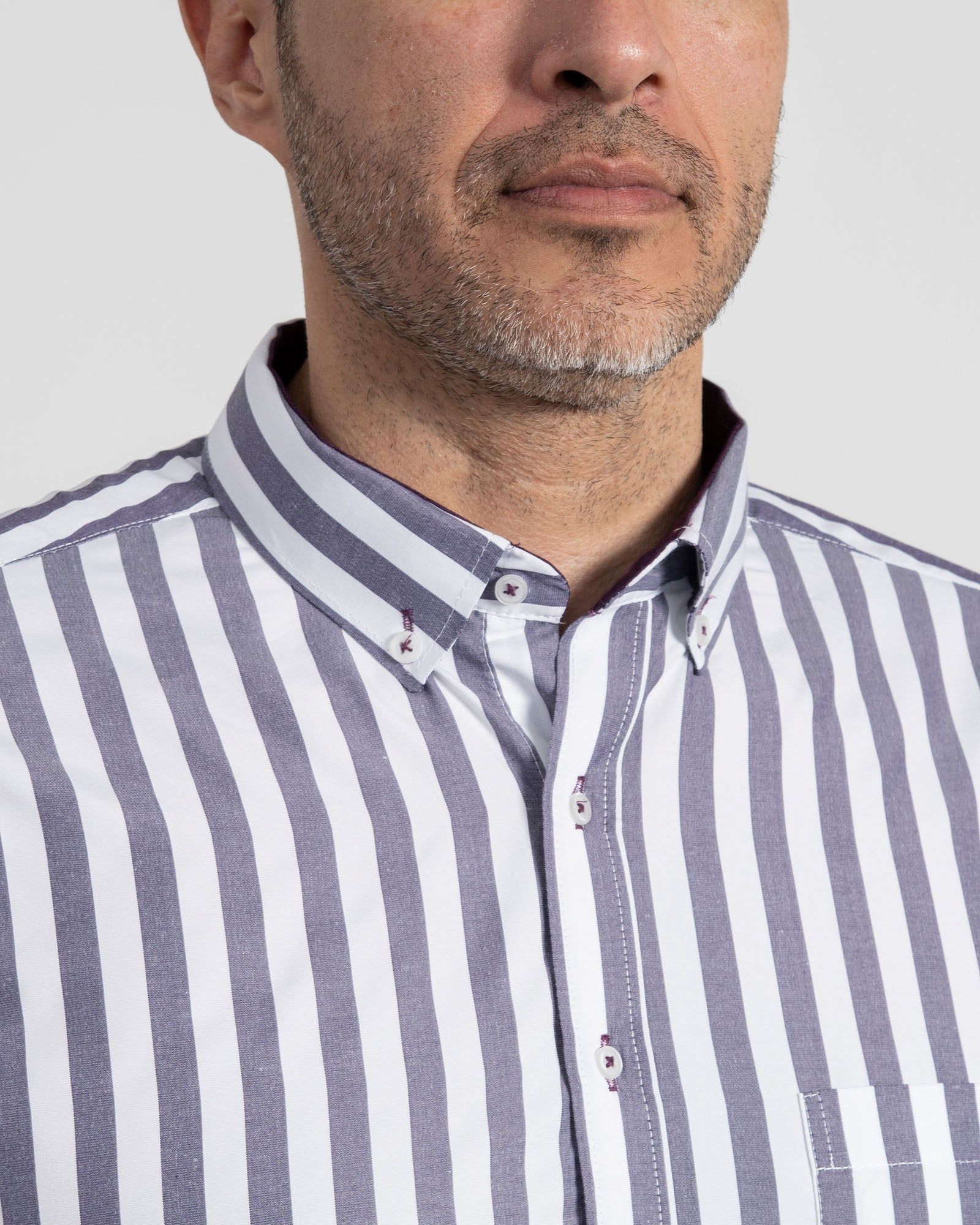 Nuestras camisas a rayas no solo te harán verte mejor sino que te harán sentir completamente cómodo. Detrás de cada botón, costura y medida hay un trabajo detallado que se ajusta a lo que necesitas, esto mezclado con la combinación de colores ideal y una composición 50% algodón, 50% poliéster hacen de esta tu camisa perfecta.