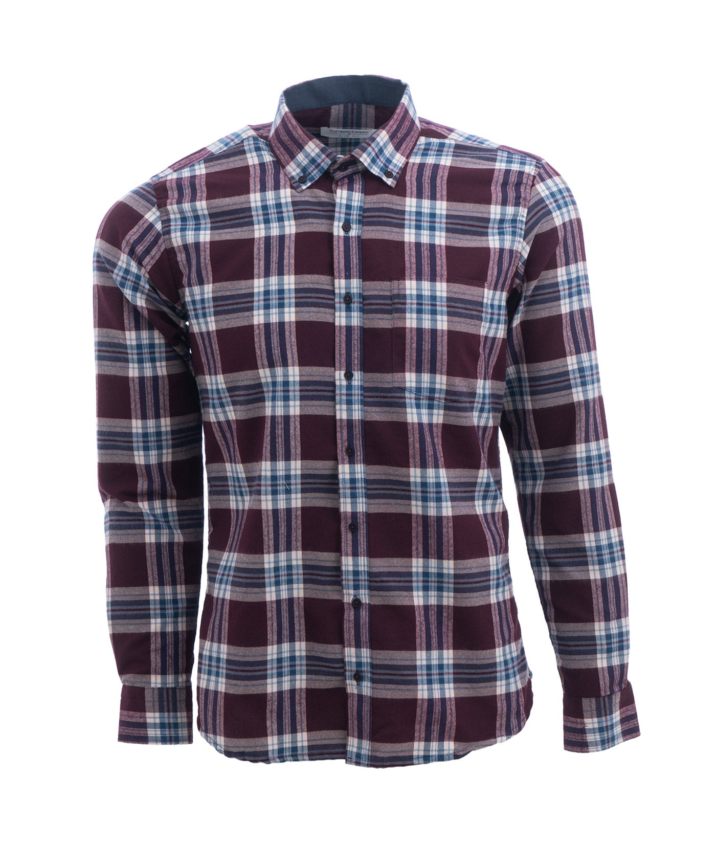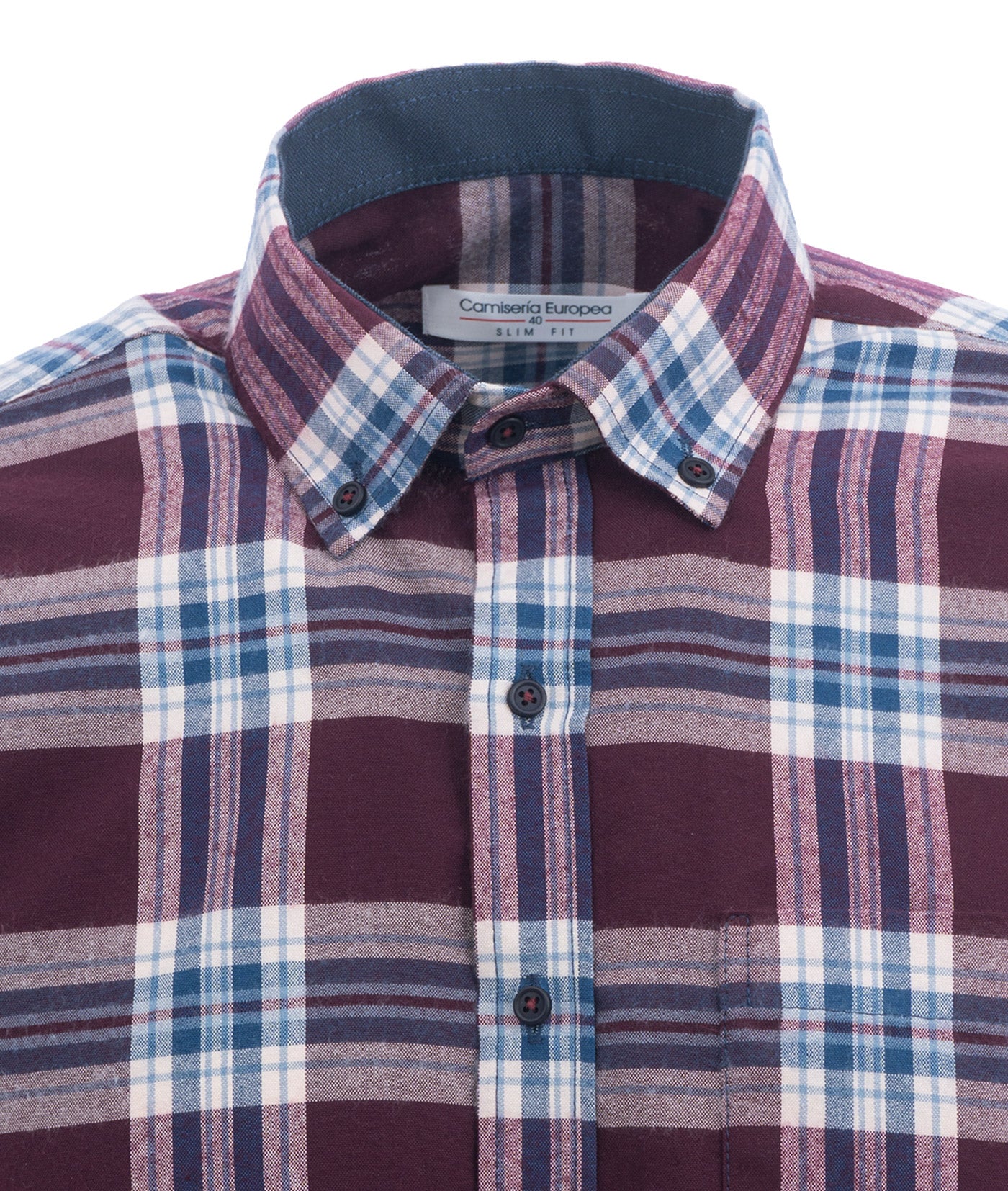 Camisas Cuadros Manga Larga Vino Lineas Gris